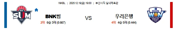 2025년 12월 19일 WKBL 부산 BNK썸 vs 아산 우리은행 스포츠중계:스포츠무료중계추천